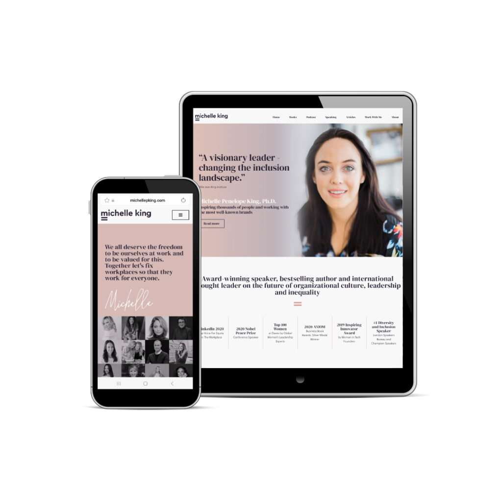 The brief was to design and build a website that would showcase the full range of Dr. Michelle King’s work, as a researcher, award-winning author, speaker, podcast host, and more. The site needed to capture her personal brand while offering visitors a warm, engaging and intuitive user experience.